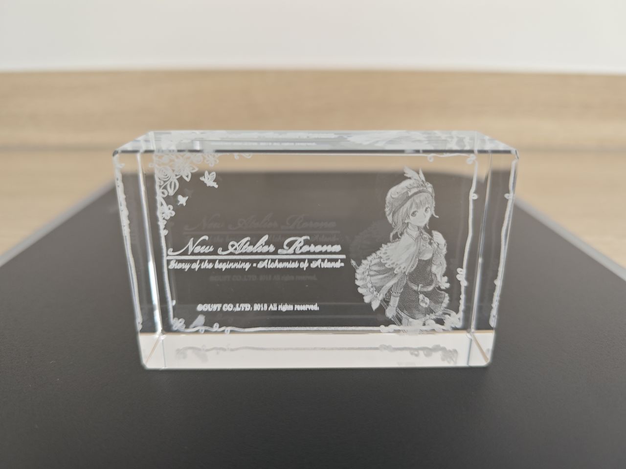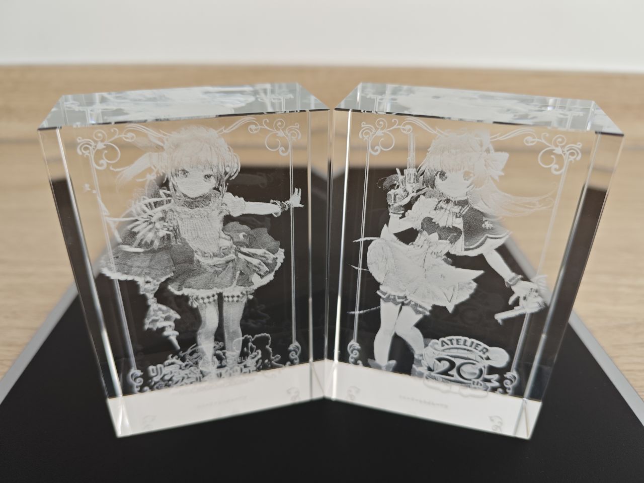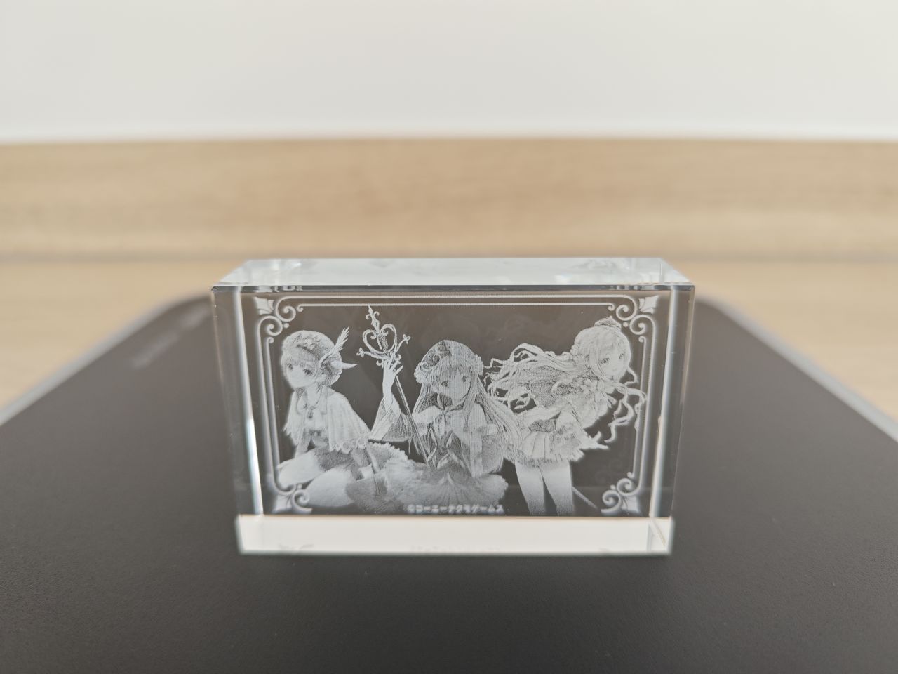 至此鍊金工房系列所有的水晶磚就展示完畢了,而萊莎三部曲和優米雅,光榮都取消了水晶磚這個已經成爲鍊金工房象徵符號的實體周邊,其出發點至今不明,大概降本增效已經成爲上市企業的職業病了吧。當然了,也並不是沒有代餐,每一代的預購店鋪特典中ebten家一般都是3D水晶燈,非要把它當成是水晶磚也不是不行,比如這兩塊萊莎和蘇菲的↓