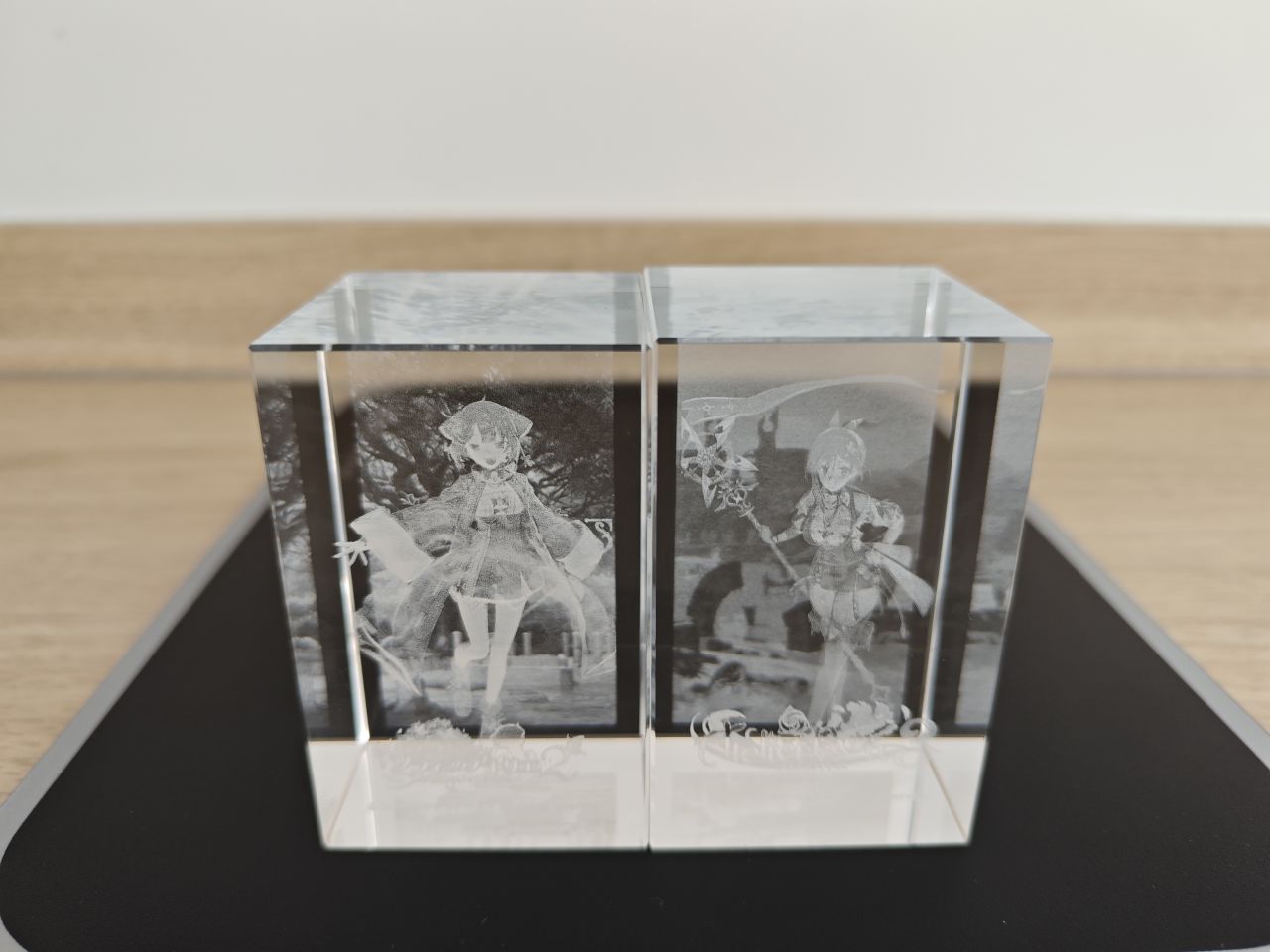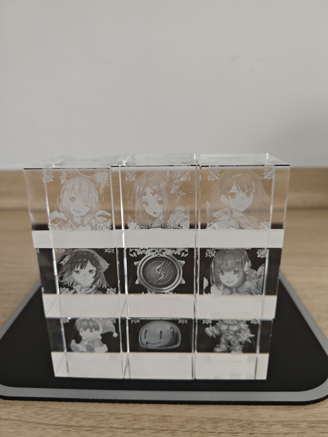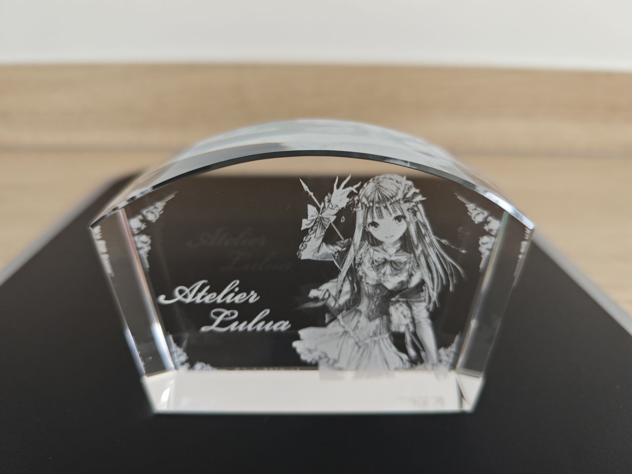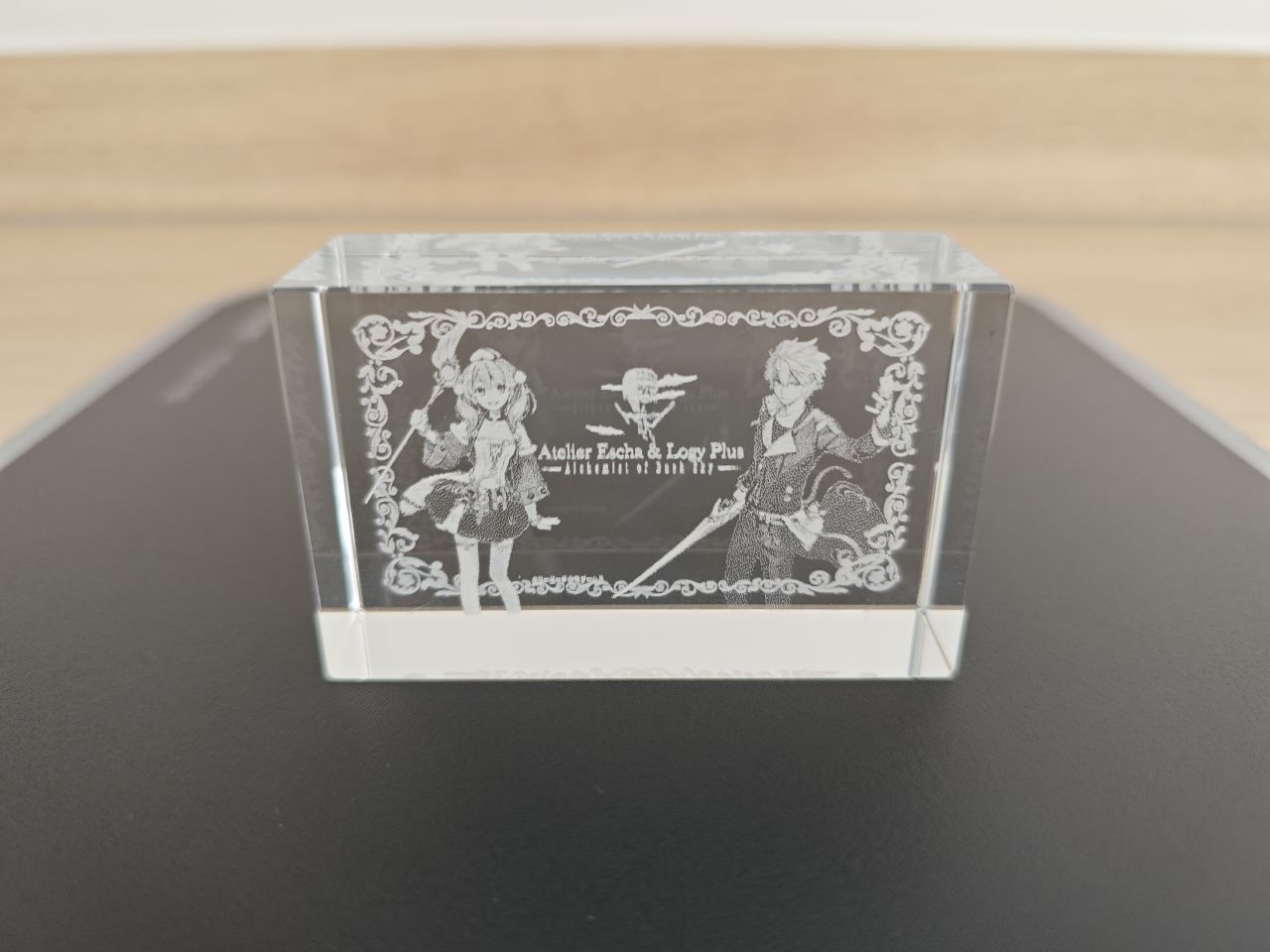 至此鍊金工房系列所有的水晶磚就展示完畢了,而萊莎三部曲和優米雅,光榮都取消了水晶磚這個已經成爲鍊金工房象徵符號的實體周邊,其出發點至今不明,大概降本增效已經成爲上市企業的職業病了吧。當然了,也並不是沒有代餐,每一代的預購店鋪特典中ebten家一般都是3D水晶燈,非要把它當成是水晶磚也不是不行,比如這兩塊萊莎和蘇菲的↓