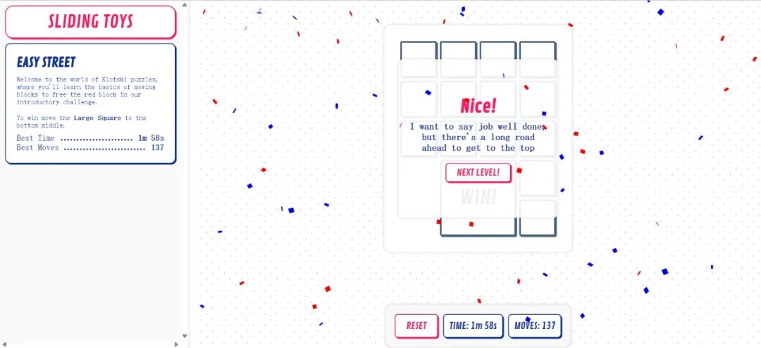 我還是比較會玩這個,大概2分鐘,移動了七十多步,就通關了,雖然不是特別快,但我覺得還不錯。