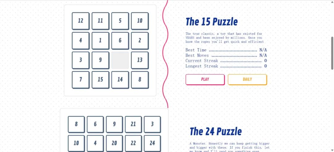 除此之外還有每日闖關,有迷你版、中等版、困難版,快去嘗試嘗試吧~