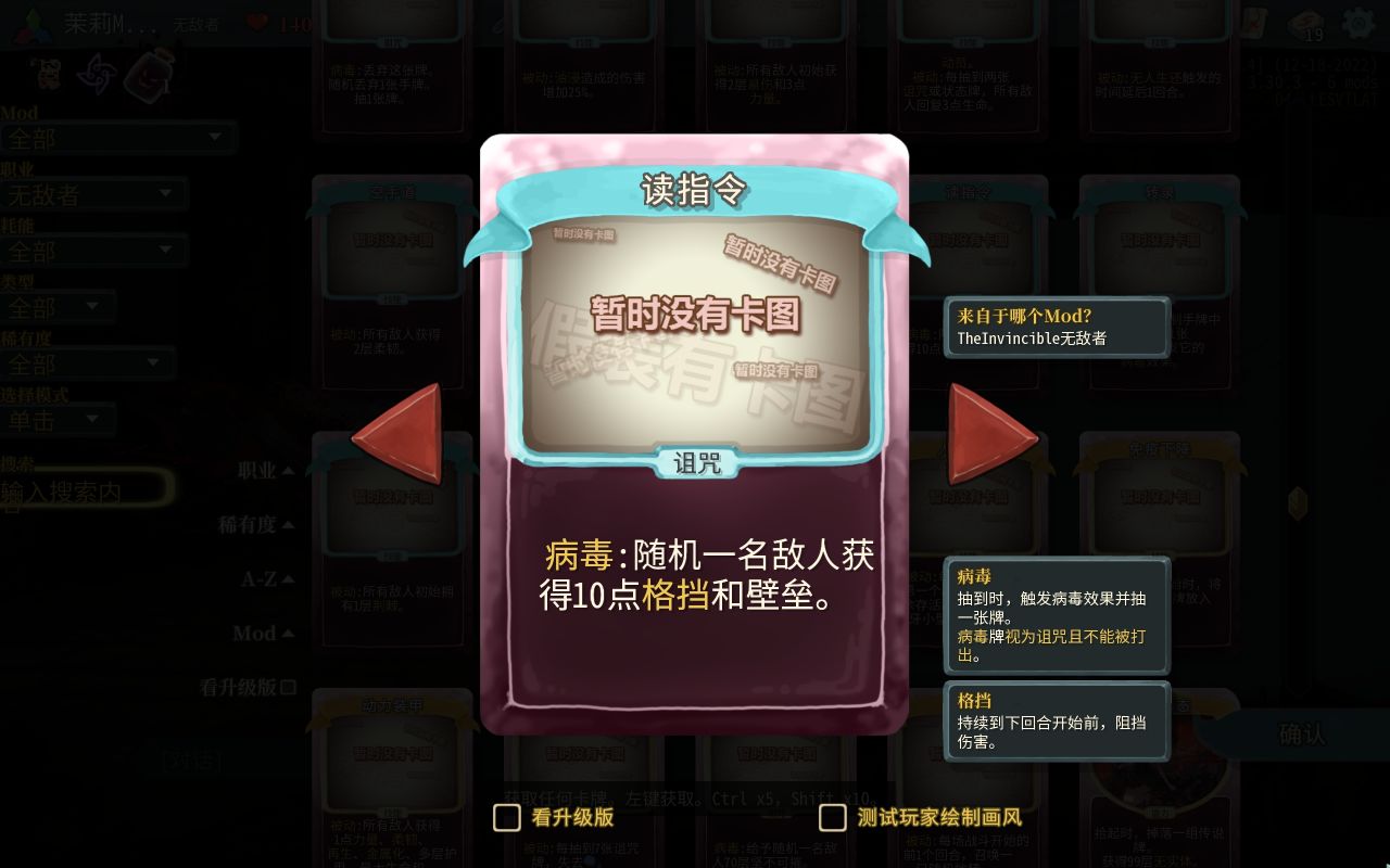 病毒牌的作用多种多样,卡住无敌者出牌,强化敌人,或者是伤害无敌者。虽然抽到之后会抽一张牌,但是因为10的手牌上限,所以只需要6张,无敌者就会少抽一张牌
