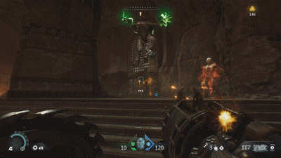 所以,雖然注重地面戰鬥,但場景的高低差依舊存在,因爲有了盾鋸衝撞的技能,讓 Slayer 可以快速接近位於高臺的敵人。