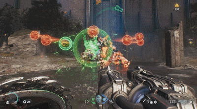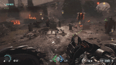 不難理解,當敵人使用閃着綠光的近戰,或是發射綠色子彈時,在命中瞬間舉盾即可完美彈反,近戰攻擊可彈反使敵人出現短暫硬直,子彈則可以彈反回去造成直接傷害。盾鋸彈反其實和《毀滅戰士 永恆》中對付掠奪者時,槍反它的綠光攻擊再切槍暴擊是差不多思路的。