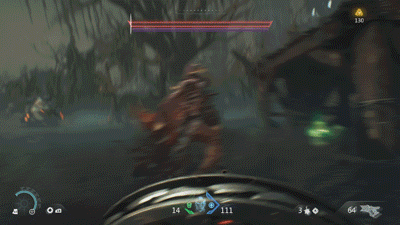 正如前面所說,本作的戰鬥邏輯變爲了兼顧近戰和射擊的地面戰,也就不用過多考慮縱向的移動方式,但走位依舊非常重要。本作移除了二段跳和閃避能力,加入了按下左搖桿(LS)進行高速衝刺的能力,讓 Slayer 可以快速在場景中移動,快速接近敵人。