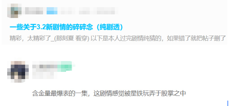 故事的精彩程度,從玩家社區的熱度就能體現,探討新劇情的帖子鋪天蓋地,隨便點開一個,動輒回覆量幾百。其中,既有對劇情架構與角色塑造的認可,也有對劇情細節和伏筆的熱烈討論。就連一些平日裏對劇情關注度不高的玩家,也被這次的故事深深吸引,參與到劇情分析中來。這些足以證明,這次的劇情確實有做到讓玩家沉浸其中,纔會迫不及待地想要知曉後續的故事展開。