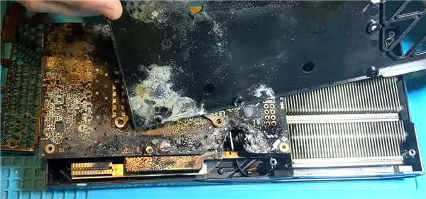 但經過多番測試,他發現GPU芯片仍然“存活”,他還成功地從“廢墟”中搶救出了內存模塊、VRM、端口甚至BIOS等部件,不過他並未驗證這些部件是100%完好,但他認爲由於它們距離火源比GPU核心更遠,應該沒有問題。