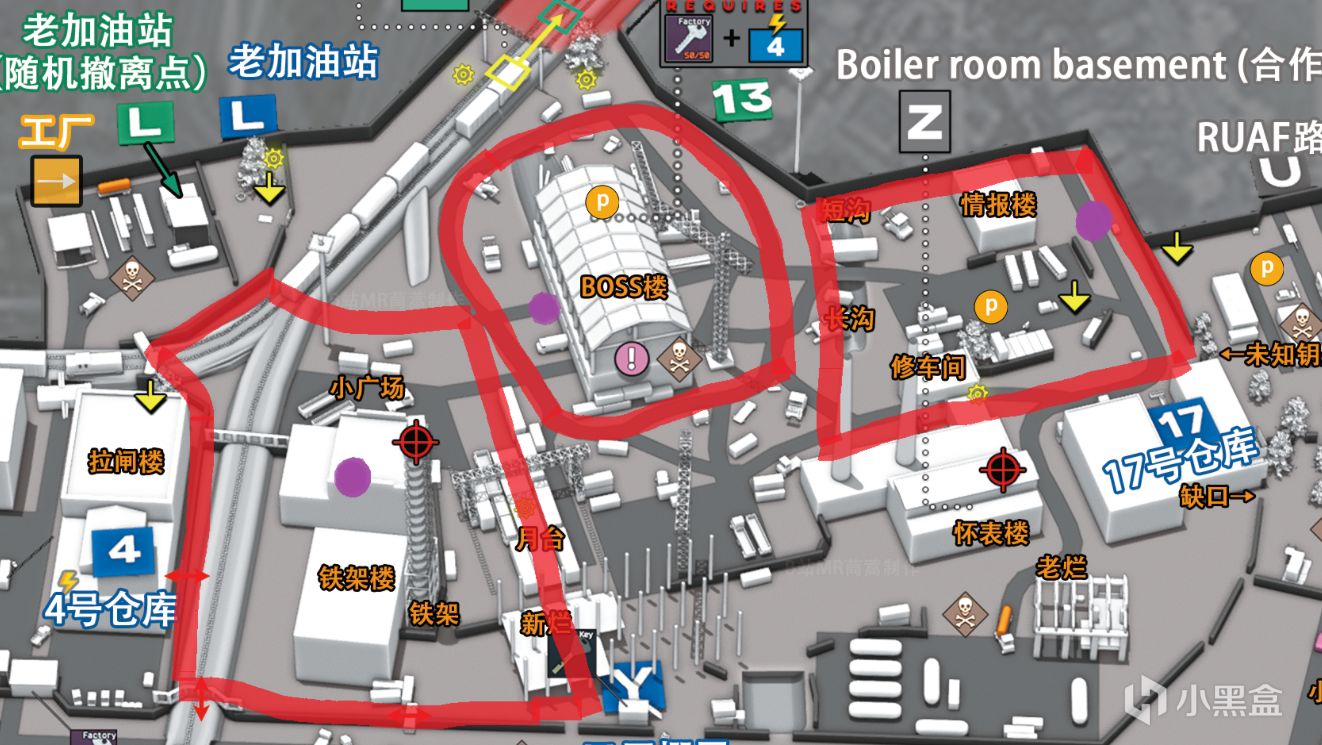图1. 很不幸,塔科夫wiki的上还是以往的邪教徒刷新点,在本人和组排队友的总结中,洗脚徒主要分布分图中三个圈中,其中紫色圆圈为祭司通常趴伏的位置