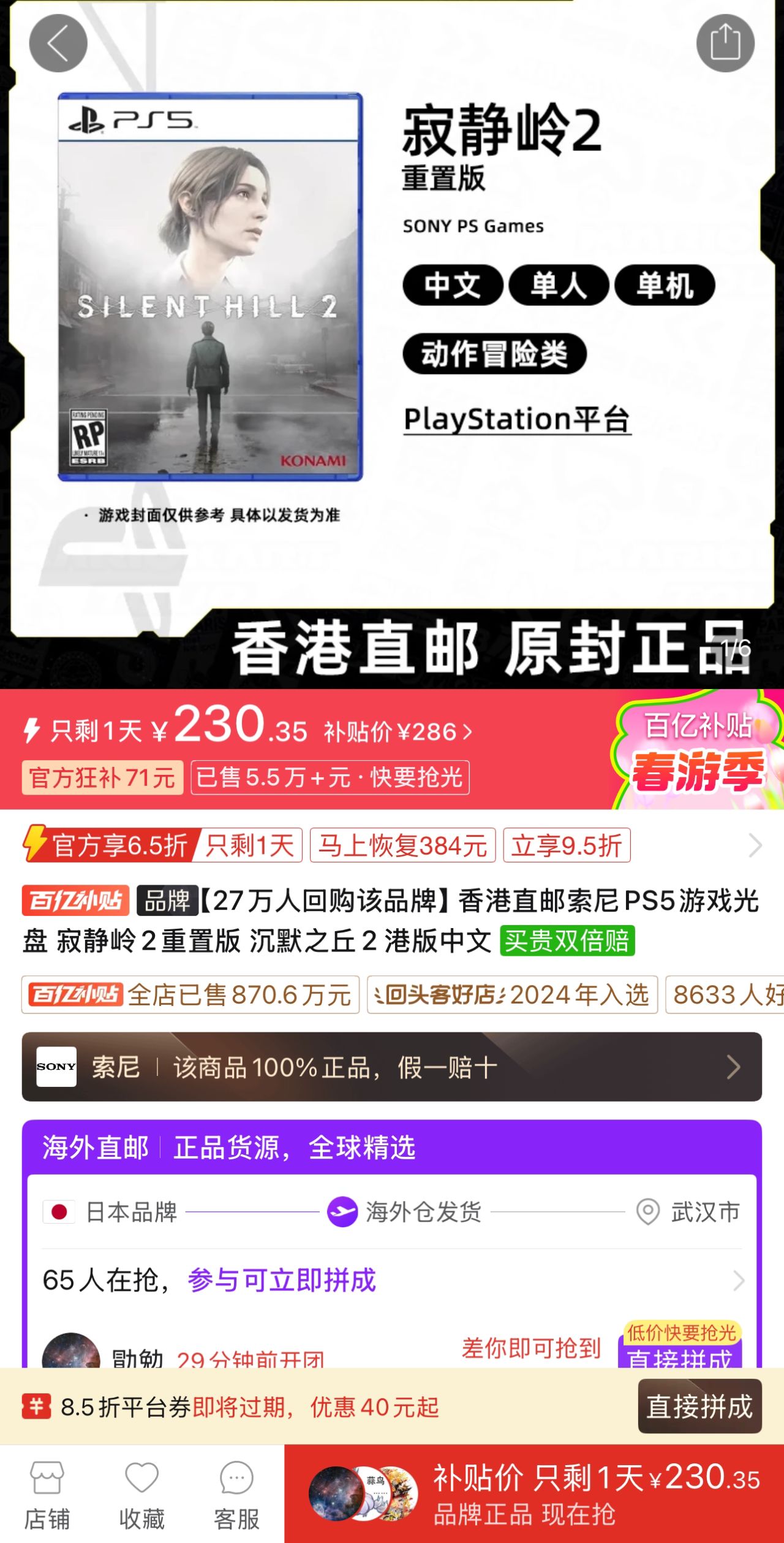 3.PS5遊戲《寂靜嶺2重製版》港版中文全新230.35元包郵,比吐槽君上週推薦的時候又便宜了10元,相信到5月應該會跌到兩百元以下,這個價買一張全新的PS5實體碟收藏還是挺划算的。