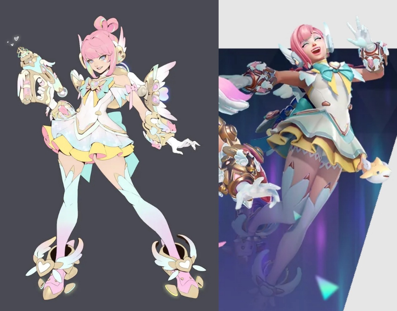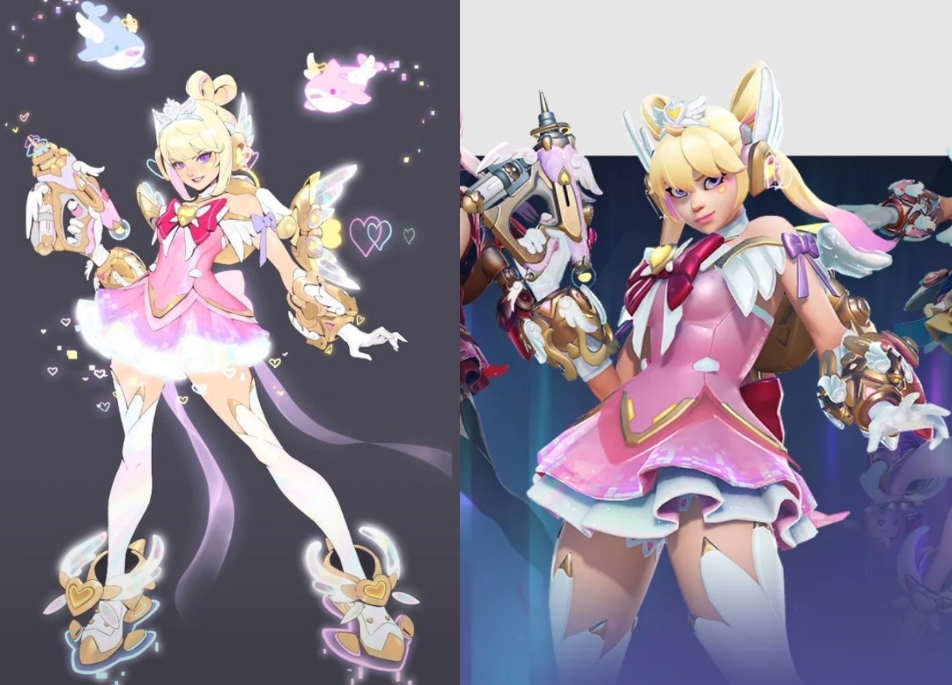朱諾的魔法少女主題皮膚將作爲S16“心動先鋒”神話皮膚登場,左右分別是源氏和渣克女王新皮膚。