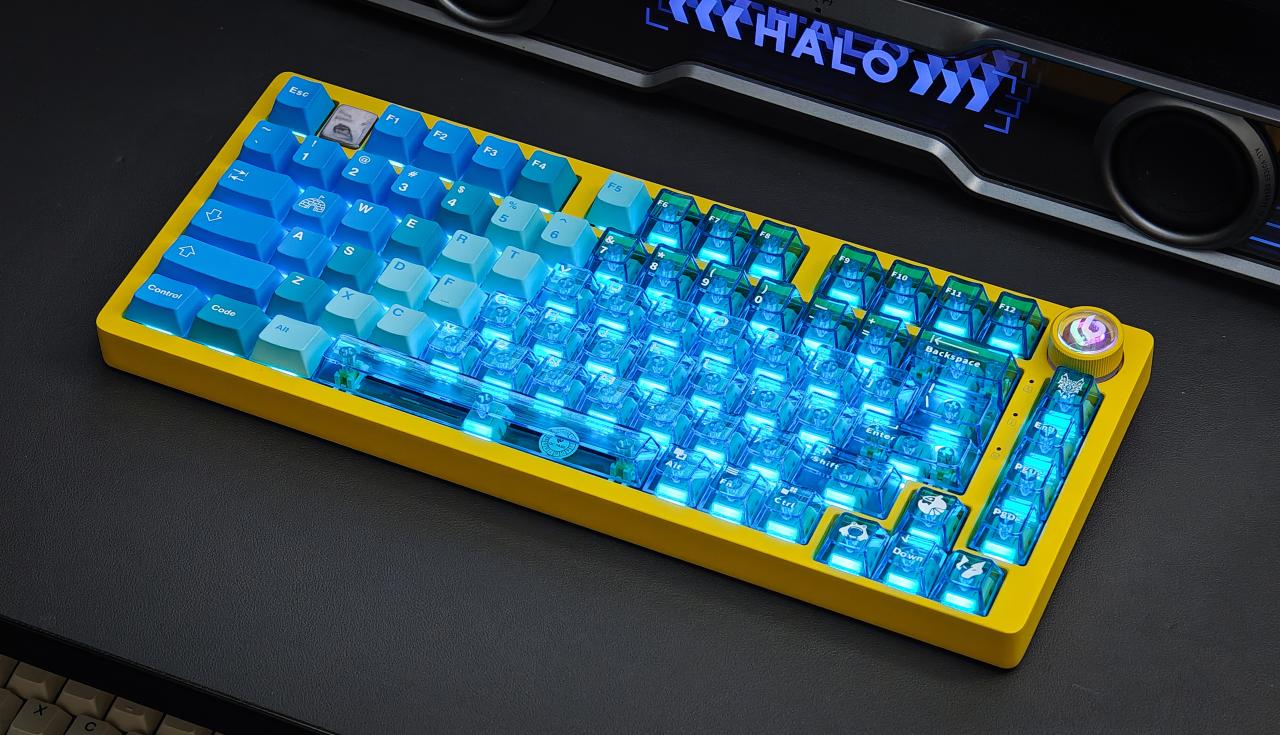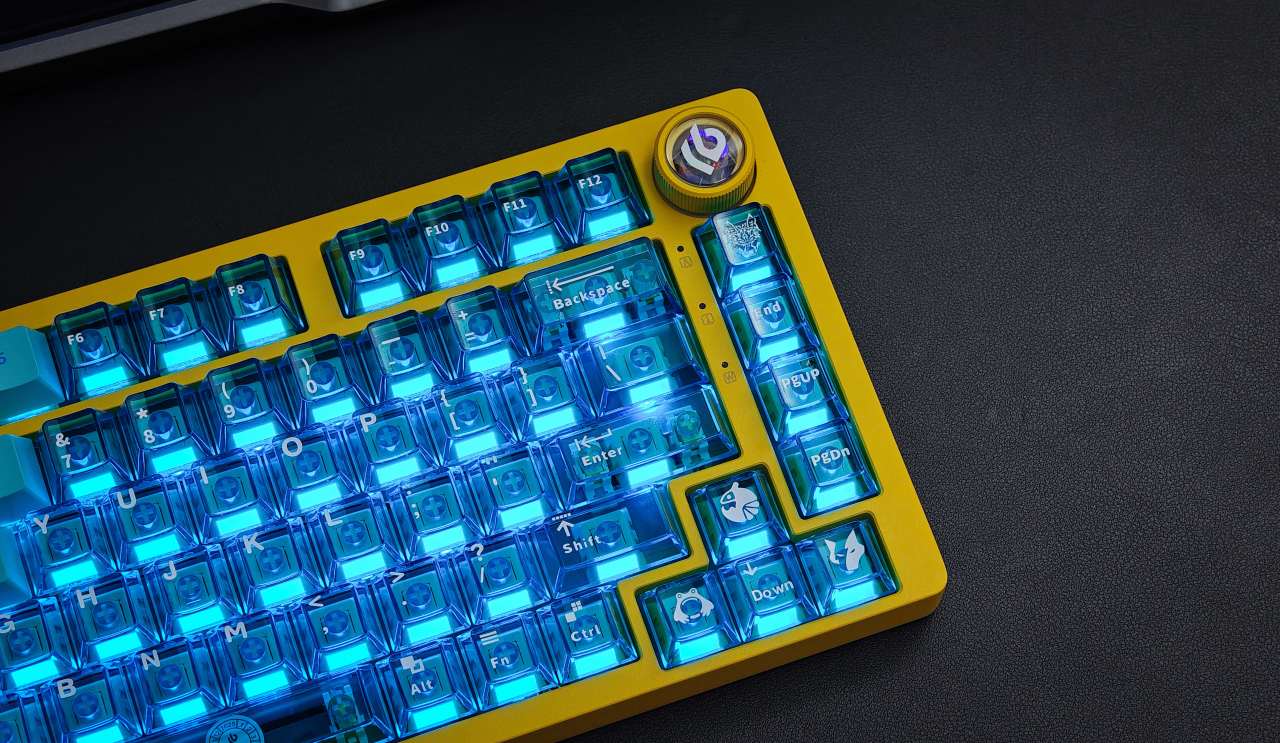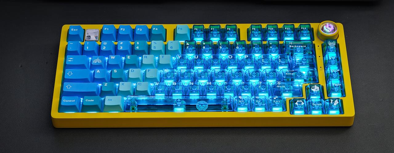我手上這把是發財黃的Hi75CPro套件,三模RGB,從外觀能看到這個鋁合金的外殼質感還是不錯的,並且摸起來也很舒服。