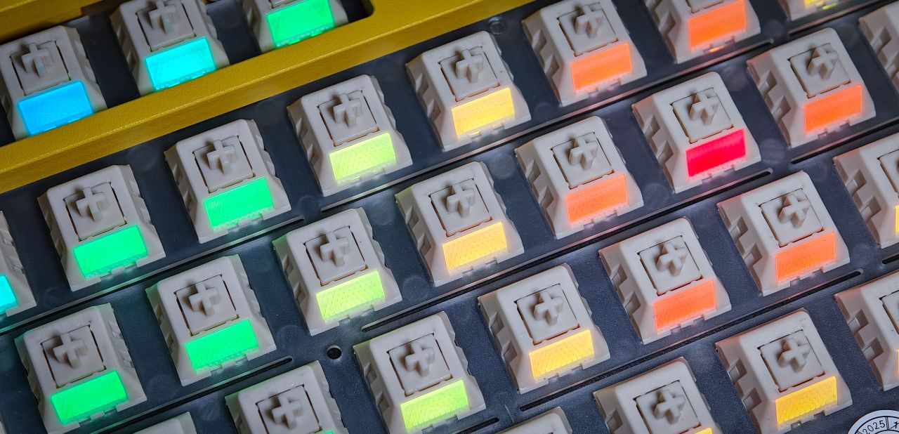 十字軸心更穩,直上直下不晃動,這個導光柱的光也很均勻柔和,加上Hi75C的填充跟鋁合金外殼,按鍵聲音Hifi~