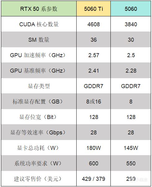 這次一共包含三個版本,分別是RTX 5060 8GB,RTX 5060 Ti 8GB,RTX 5060 Ti 16GB。