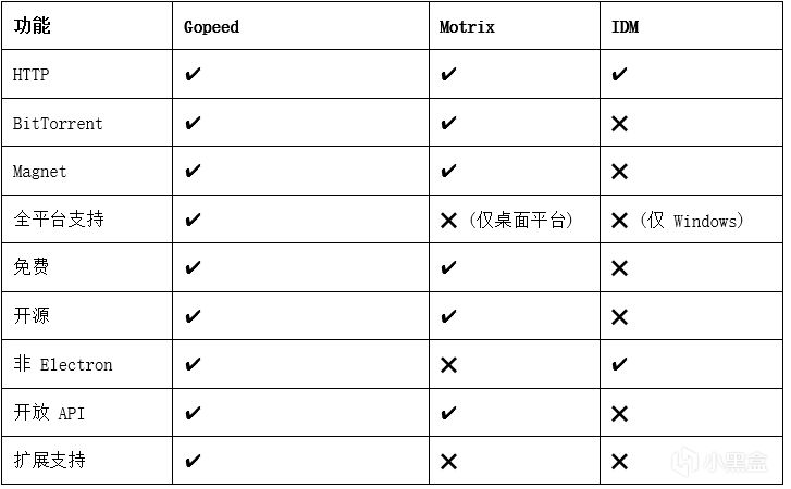 这里和市面上流行的下载器进行对比,可以很直观的看到 Gopeed 的优势。