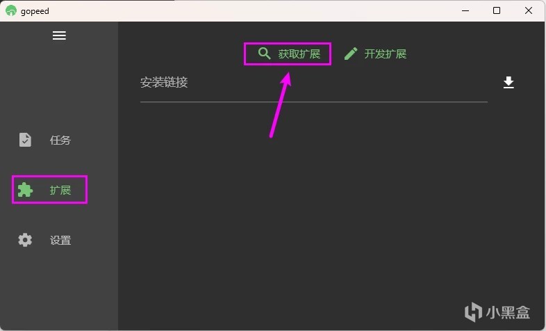 Gopeed 还支持扩展下载功能,在扩展下点击获取扩展就会跳转 Github。
