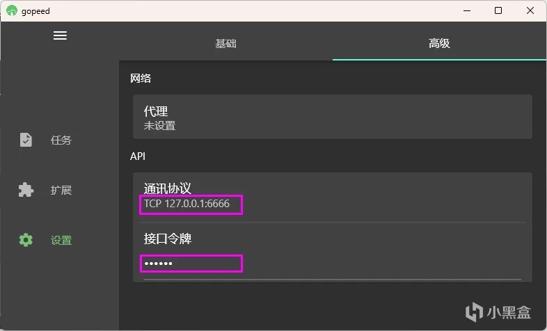 此外,Gopeed 对外提供了 HTTP API 接口,可以通过 API 进行下载管理。首先需要设置通讯协议为 TCP,通过设置 -> 高级 -> 通讯协议,将通讯协议设置为 TCP,并设置 IP 和端口,同时建议设置一个令牌,这样就可以通过 http://127.0.0.1:6666 访问 API 了,如下图: