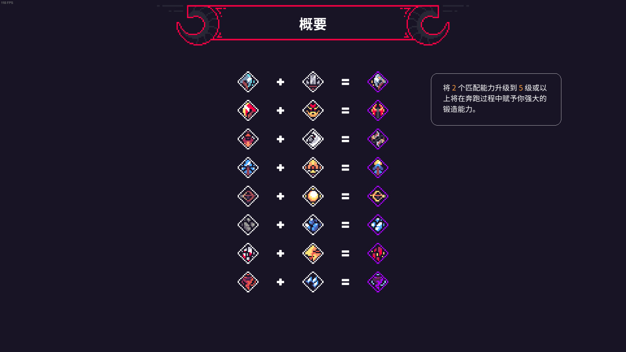 當兩個可以匹配的技能均升級至5級時會立刻獲得不可繼續升級的超武(注:每局只觸發一次),優點是多了個免費技能,缺點是它在經過各種升級後的普通技能面前其實好像也不是那麼有存在感。(戰局內不顯示搭配,搭配表也不能直接看到技能名字,只能對着圖標硬看,不知道之後會不會優化)