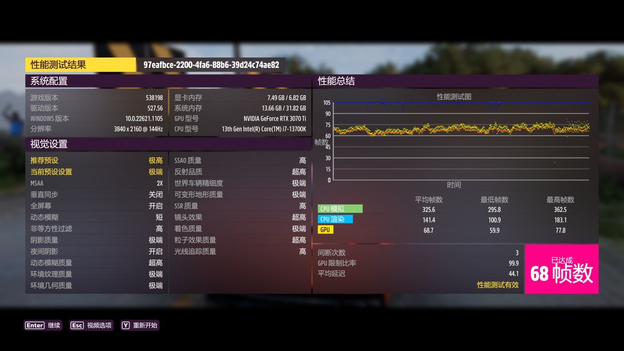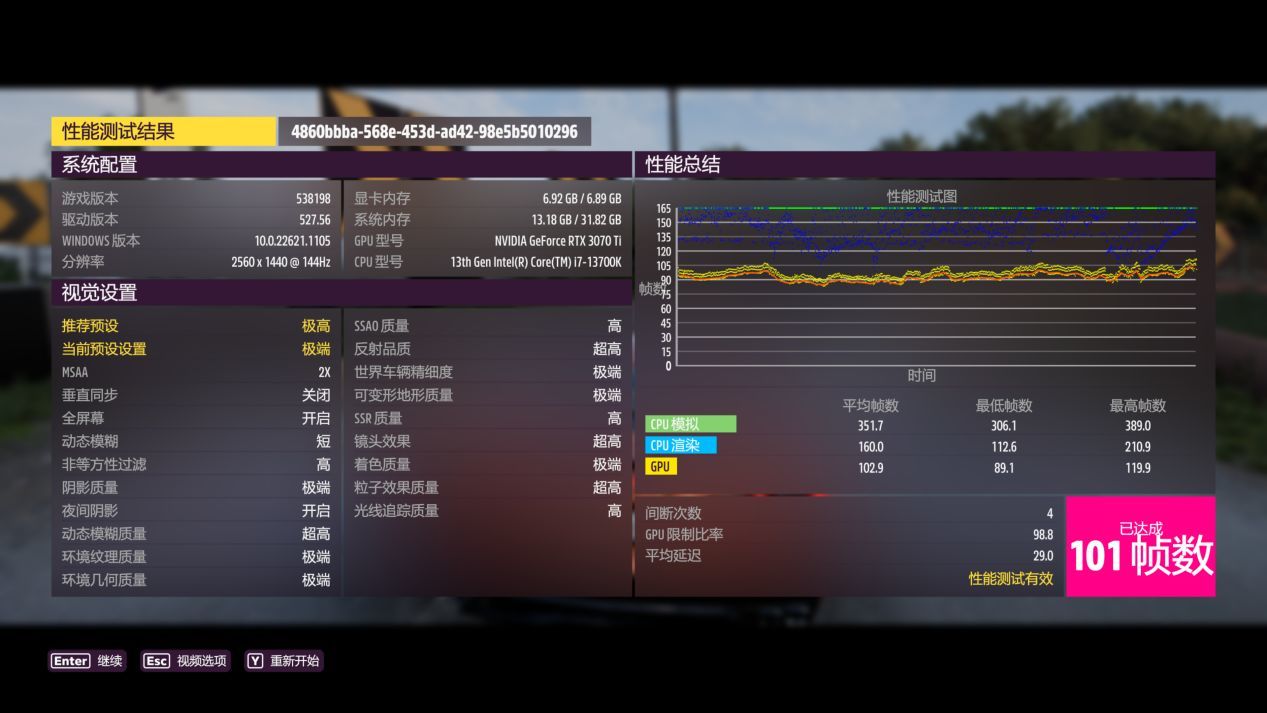 4K分辨率最高畫質平均68幀,2K分辨率最高畫質平均101幀