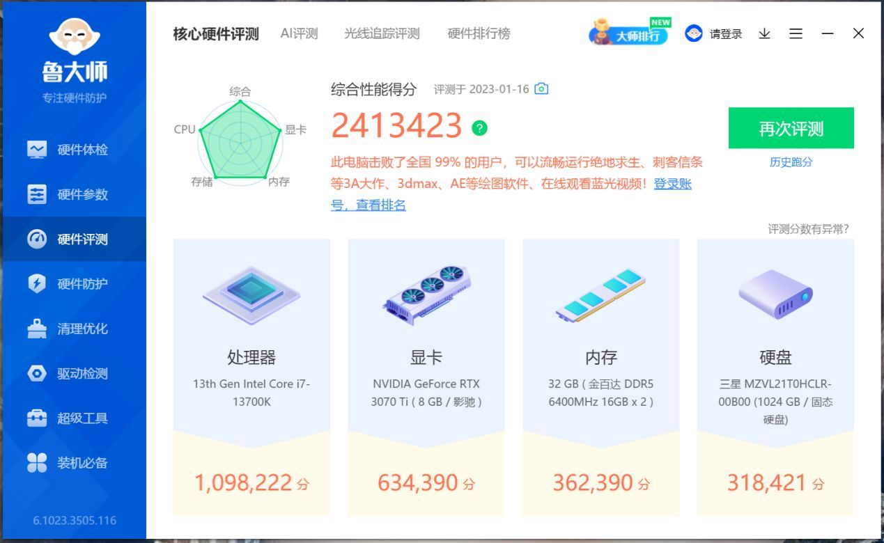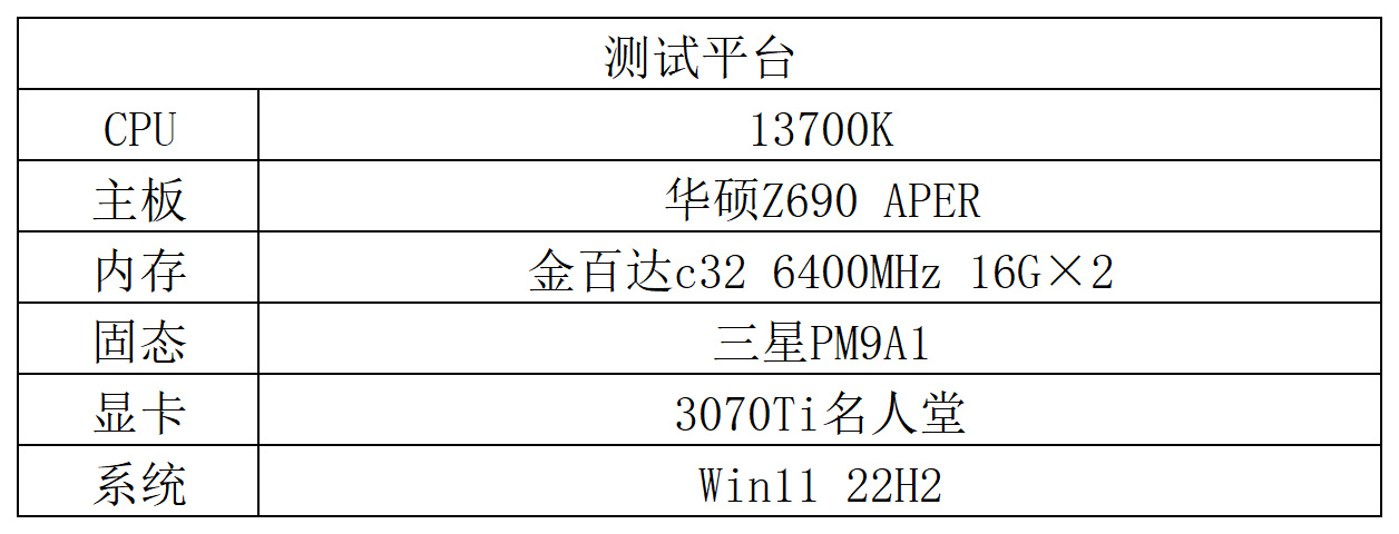 測試平臺13700K+6400MHz C32 DDR5,BIOS設置僅開了內存XMP,其餘全默認。