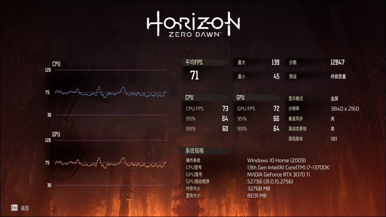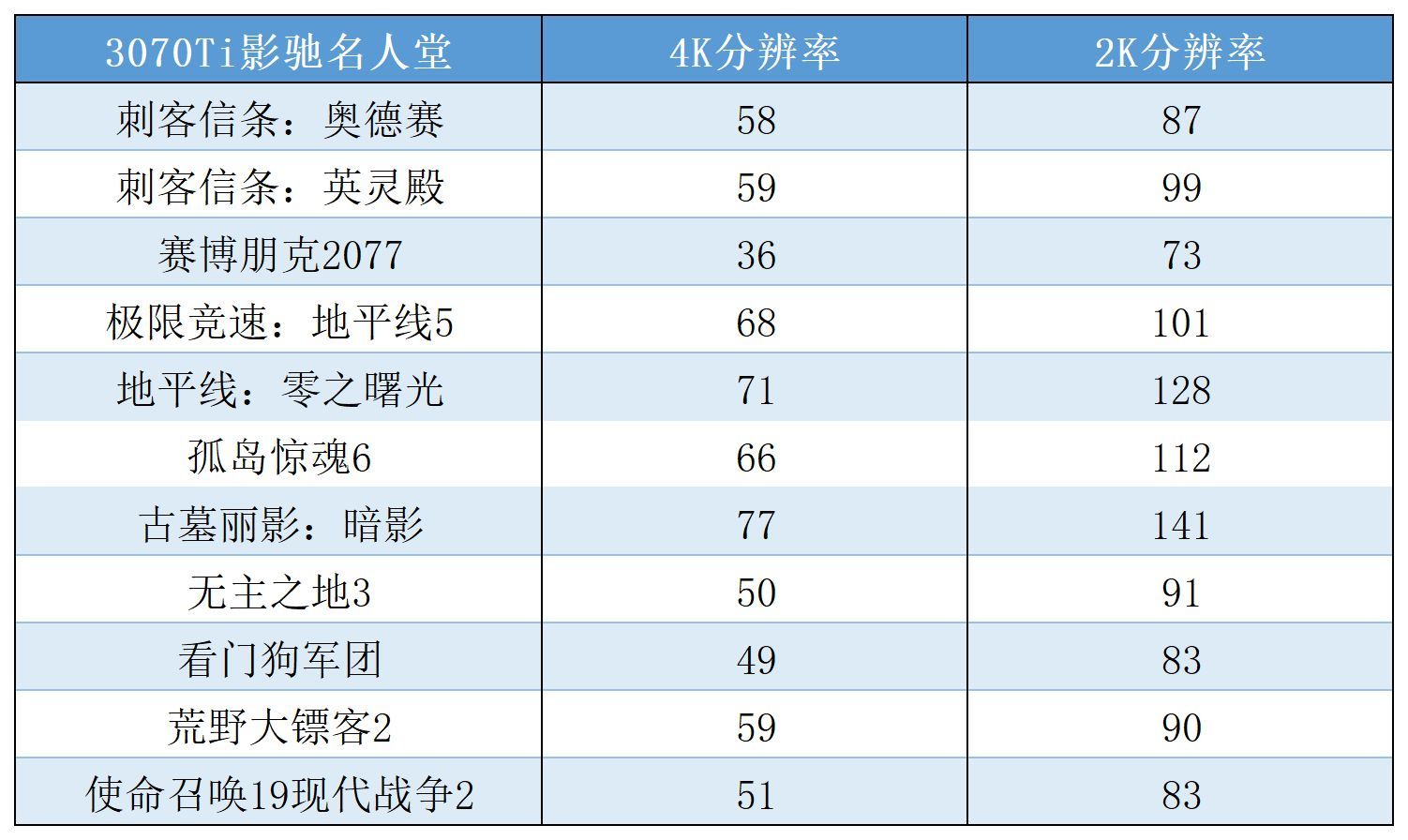 4K分辨率最高畫質平均71幀,2K分辨率最高畫質平均128幀