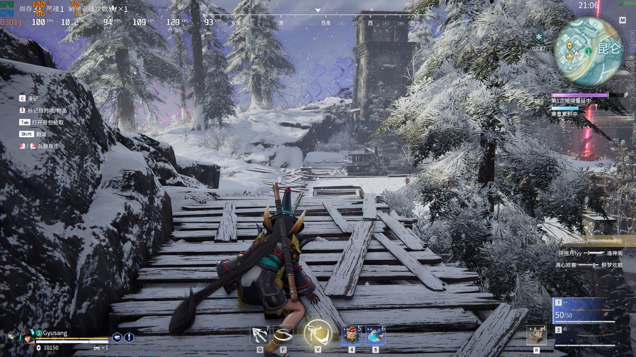 永劫也是支持DLSS的,開啓DLSS平衡後平均幀數可以提升到109幀,如果想提升到144以上,稍微調低點畫質就能達到。