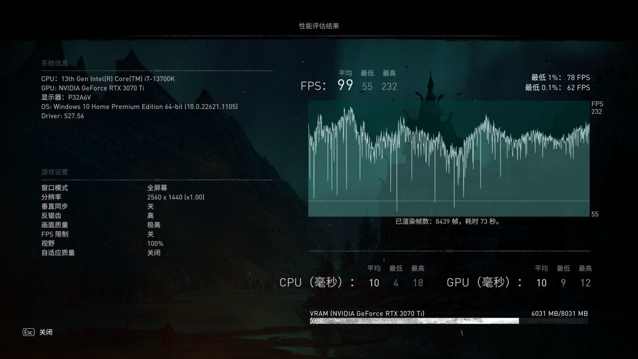 4K分辨率最高畫質平均59幀,2K分辨率最高畫質平均99幀