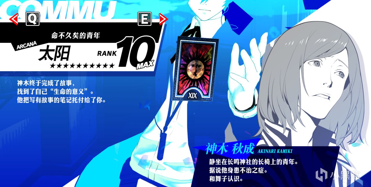 作为《女神异闻录3》中的“太阳”塔罗,神木秋成在生命的最后意识到了,自己生命的意义是由他人来决定的;而只要他曾经或以后给他人带来过光芒,那么他的生命就如太阳般温暖、闪耀。