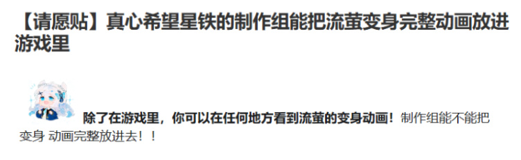 打開星鐵的玩家社區,能看到兩種聲音,首先是非常滿意的玩家,覺得這次的動畫質量優良,情緒渲染也到位,融入進主線後效果非常好,體驗感超過了在視頻平臺單獨觀看,但也有部分玩家認爲,動畫質量確實很好,但由於在視頻平臺提前放出已經觀看過,導致在遊戲中感染力下降,沒能達到自己的預期。