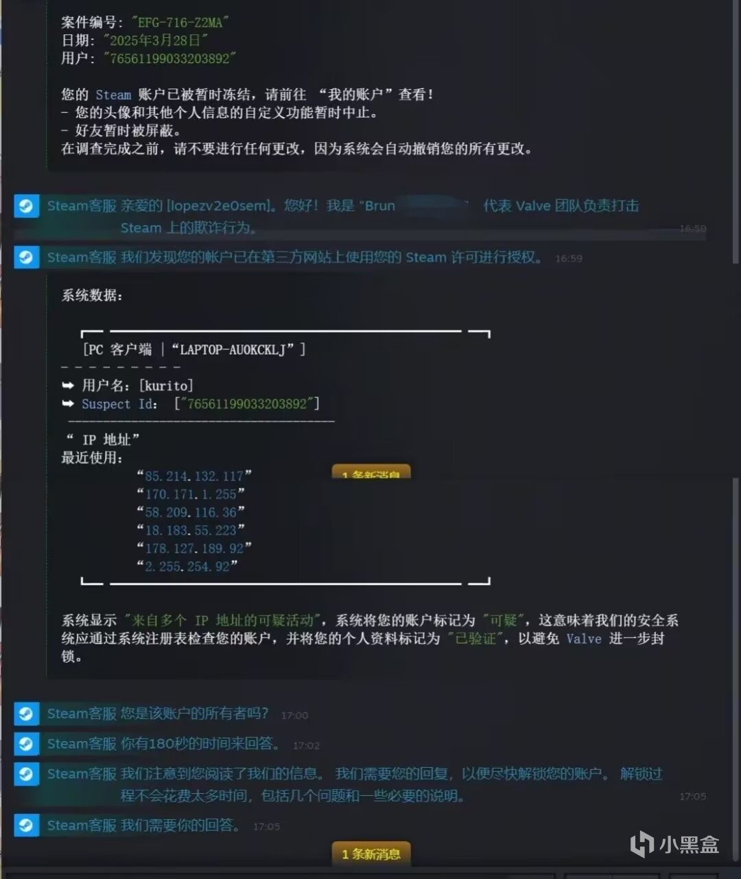 5 好友列表突然多出来一个看着很像Steam官方的人员,(这种情况下Steam账号已经泄露了,骗子已经能登录你的Steam账号了)他会屏蔽你的所有好友,让你转移库存给一个好友,但其实他已经掌握了你的api key 会改报价,你认为是你的好友,其实是他伪造的