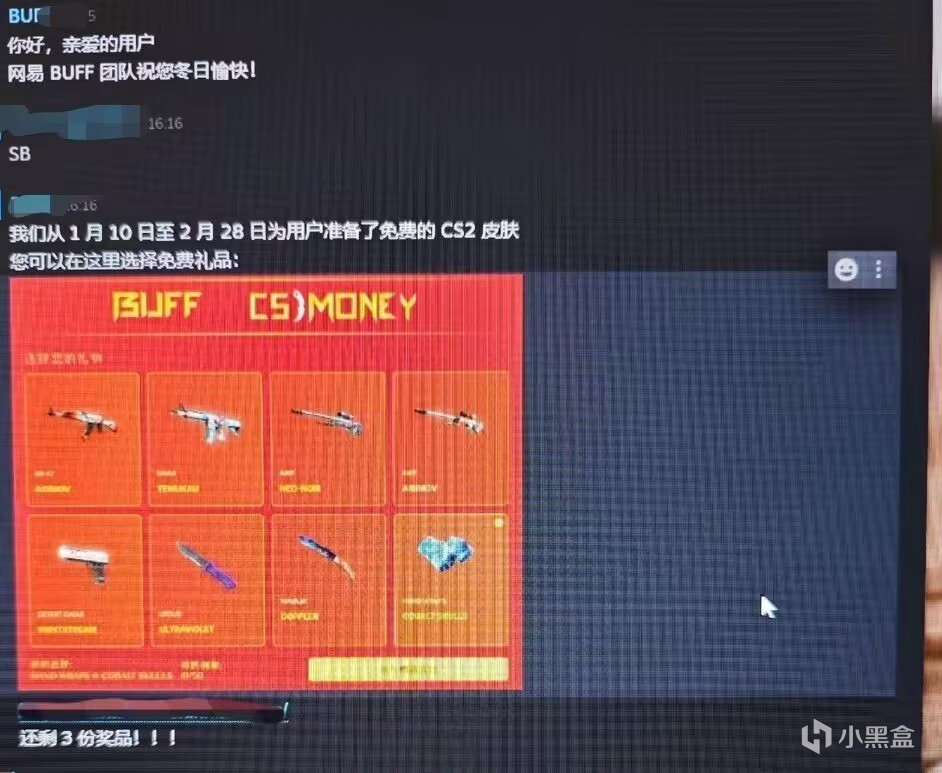 7.突然发来个buff多少多少周年庆送饰品之类的,这个看着很逼真,其实是镜像骗子网站,骗你登录你的steam然后他们转移库存,盒友们千万不要乱登录