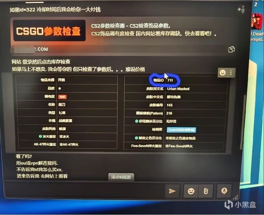 2 饰品查看模板类也是很常见的骗局,通常是骗子发来一个声称可以看你饰品模板好不好,然后骗子会说如果值钱会大价钱收的一类话骗你点击链接