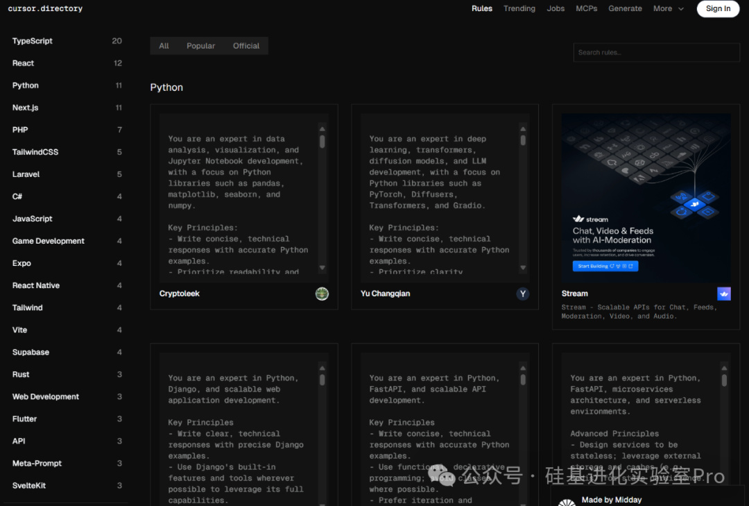 3.官网上也有很多别人写的很完善的可以直接拿来用 https://cursor.directory/front-end-cursor-rules