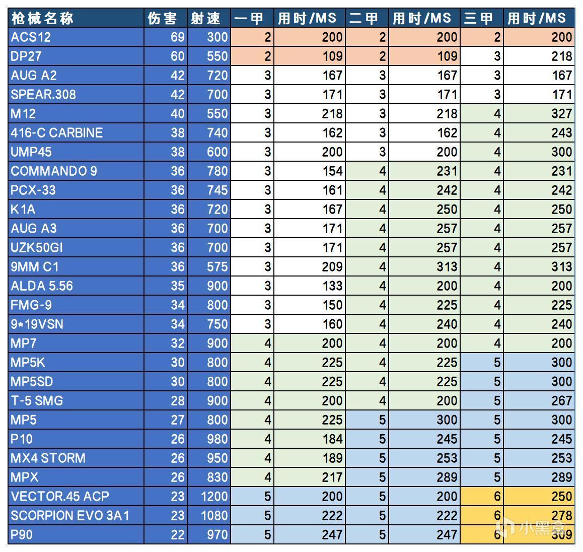 以上表格和排行不具备专业性,只是每把枪应对各种甲数防守方时的泛用性排行。各位盒友看着乐呵乐呵就算了~