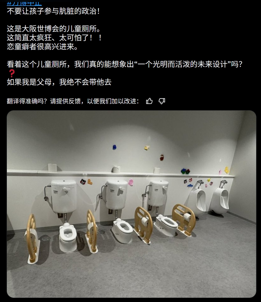 顺带一提,另一边的儿童厕所也没能躲过网友们的吐槽,无任何遮挡的设计,被批评是为了方便恋童癖偷窥。