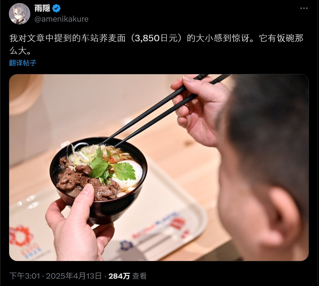 想要现场品尝大阪特色美食?没问题,园区内设有专门的就餐区域和各品牌的便利店,前提是你不光得排队,坐下用餐还要限时50分钟并收费550日元(约人民币27元),不想付钱就只能站着吃。另外,一些网友也分享了世博会内餐厅食物的价格,诸如一碗牛肉荞麦面卖3850日元(约人民币196元),一个冰淇凌卖700日元(约人民币36元),诸如此类并不便宜的食物价格,也在网上引发了不小的讨论