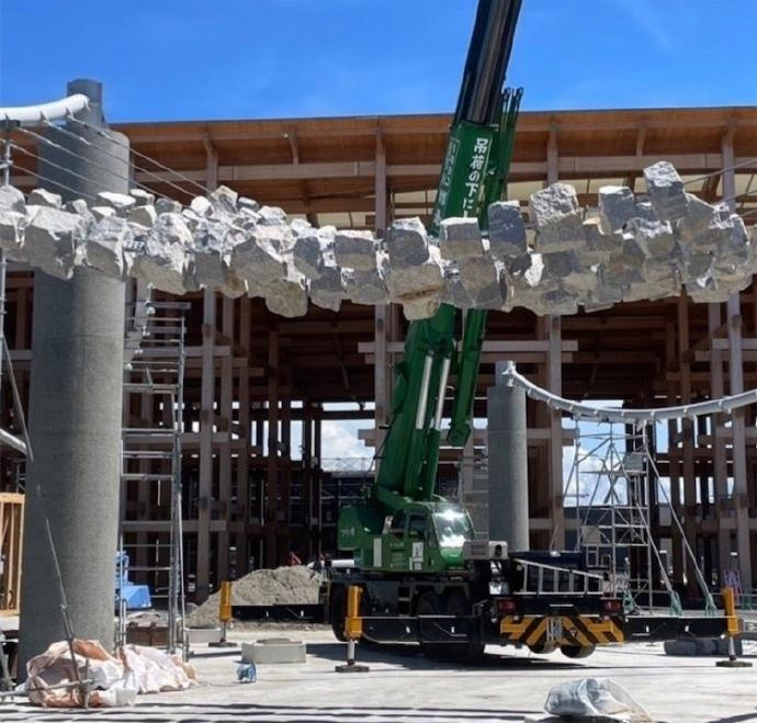 比如,除了前面提到的价值两亿日元的厕所外,在这次世博会现场,游客们还可以看到一处造价高达4.22亿元日元(约人民币2200万元),由七百多块重达90至250公斤不等的石头,搭建而成的一座石头凉棚。你要说它艺术不艺术,我可能真看不太出来,我只知道这玩意儿一旦出事,底下遮阳的人梦想转生到异世界,应该不是什么难事。