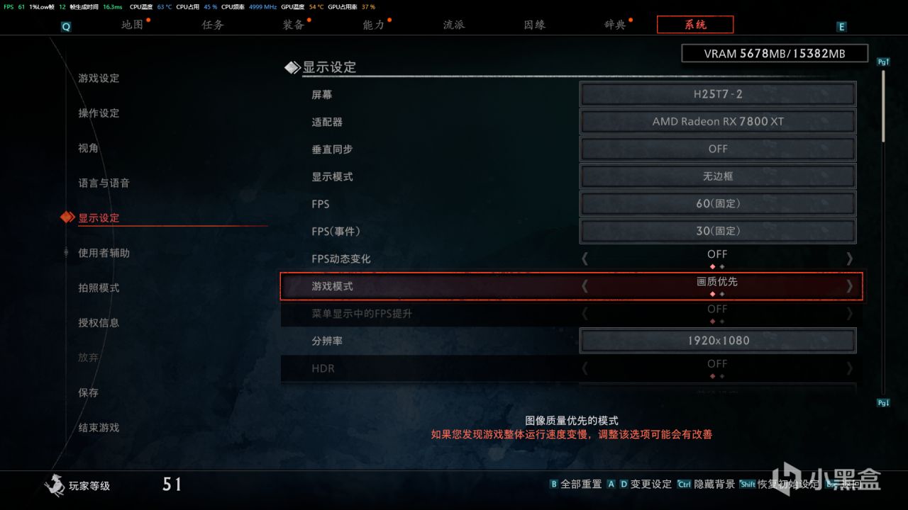 爲什麼一些玩家玩遊戲會暈,就是因爲遊戲幀數跳動幅度太大了。眼睛看到了,大腦處理轉化太快了所以有點不適應。所以我們把遊戲幀數設置爲60就可以,如果不能穩60幀,我們也可以設置爲30幀。之前電腦壞的時候,我用幾年前的1060和I5 8400的配置外接顯示器,全部都調爲最低。其實30幀啓動浪人崛起的體驗也很不錯。