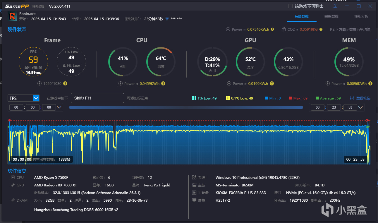 4月10日,忍者組對《浪人崛起》又發佈了中優化補丁。新加入了根據遊戲負載自動變化的fps動態調整,切換到steam界面還會自動暫停了。存檔機制也優化了不少,其他就是對於GPU的各種優化。傳說歸傳說,那麼實際表現究竟如何呢?趁着更新又上去玩了一會兒,今天給大家分享一下相關的設置和體驗。我個人的配置如下,長時間的戰鬥體驗之下感覺還是很流暢的。我用幀率工具測試了一下,幀數波動還在我個人可以接受的範圍,戰鬥起來也沒有什麼粘滯的感覺,石火的抵擋也輸入的十分快速。