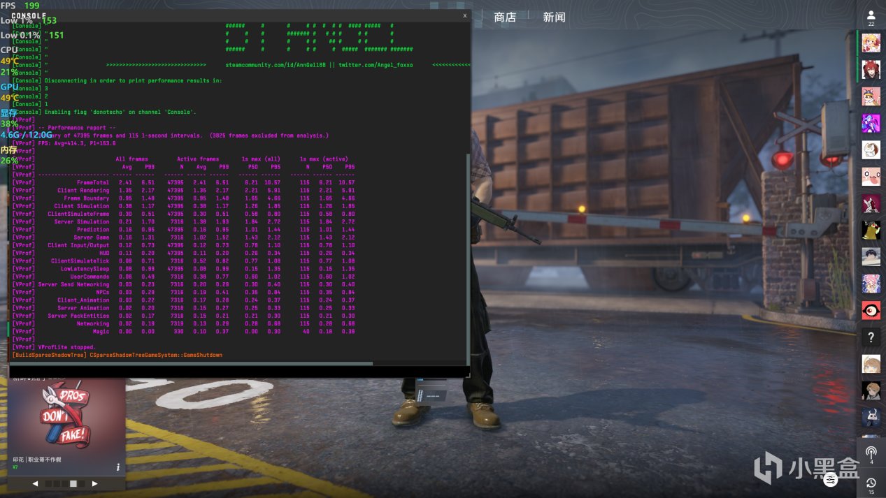 XMP超频后:平均帧数为414FPS,LOW帧为153FPS。
