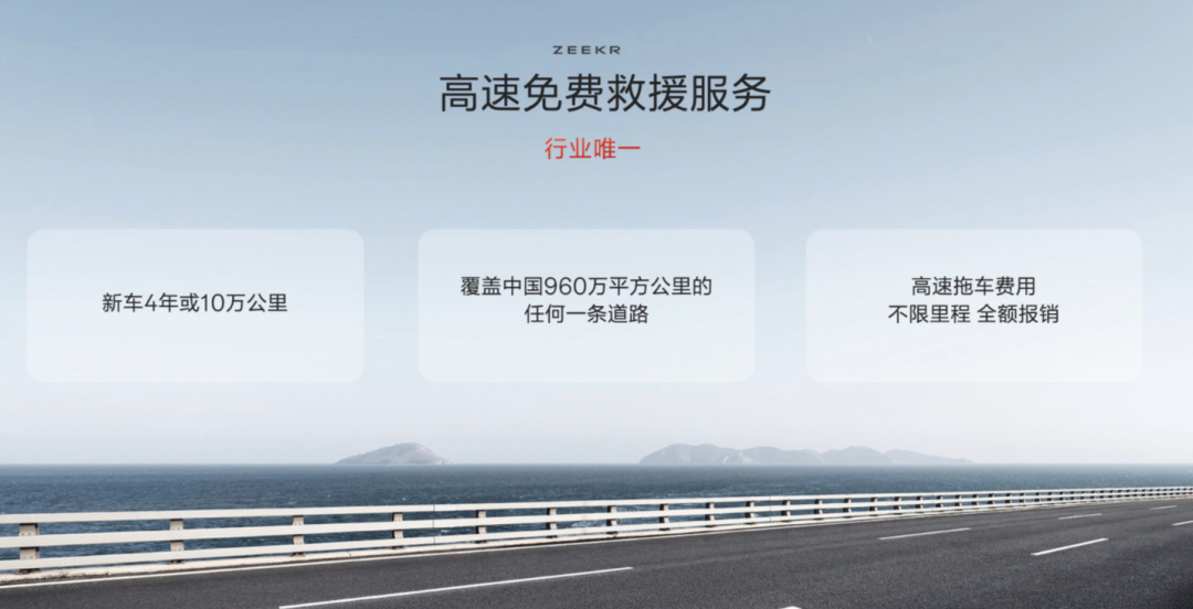 除此之外,针对极氪之前一直被诟病的售后问题,极氪老大安聪慧也专门在发布会上单开一节,拿出了高速救援免费等一系列政策方案。