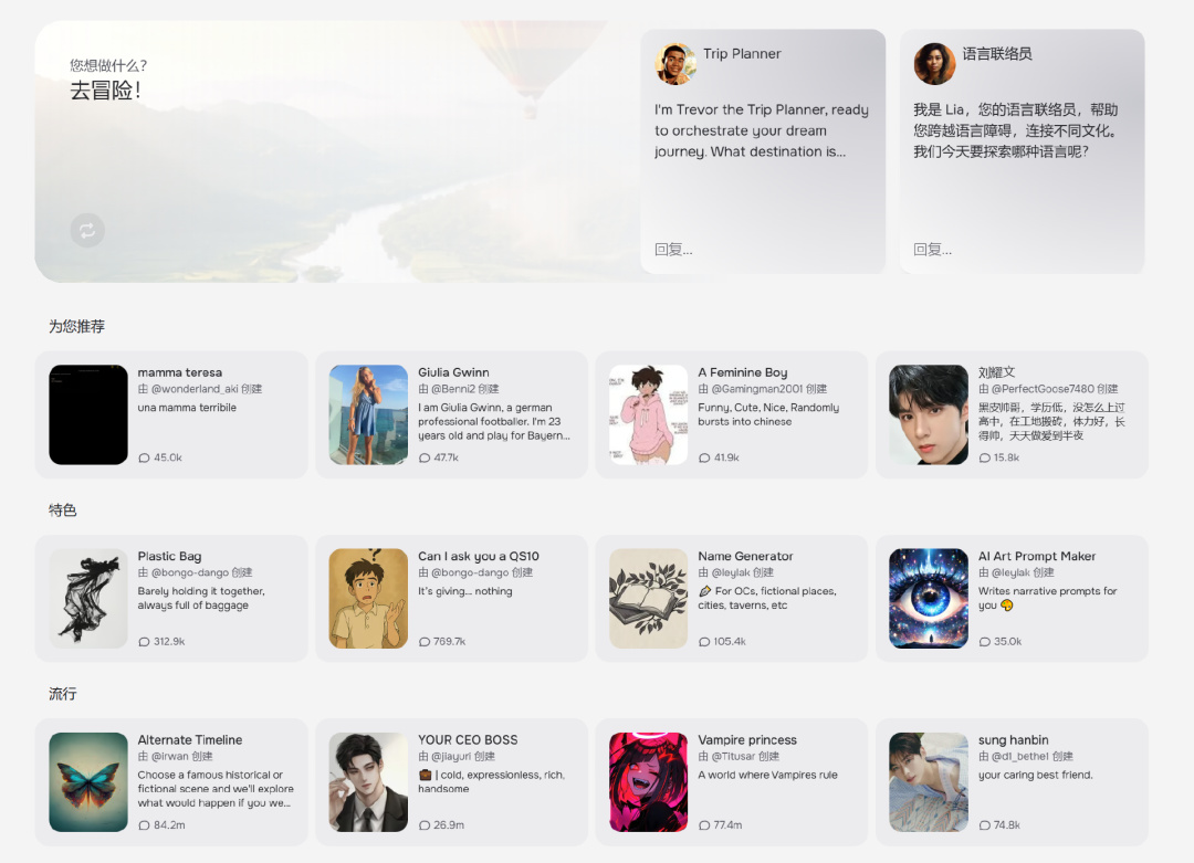 如果只是以上描述的内容,可能部分玩家会觉得这也不是什么稀奇的产品,大模型大战中就有很多类似的AI陪伴产品诞生,比如MiniMax的《星野》、Character.Al等等。