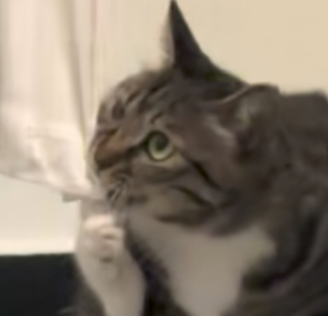 猫咪:想多了,本喵只是单纯爱扒拉窗帘但一不小心爪子被勾住了而已。