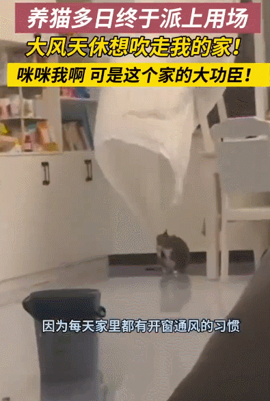 4月12日,山东临沂。主人开窗通风忘关窗,大风袭来窗帘被吹飞,小猫咪苦苦守家。