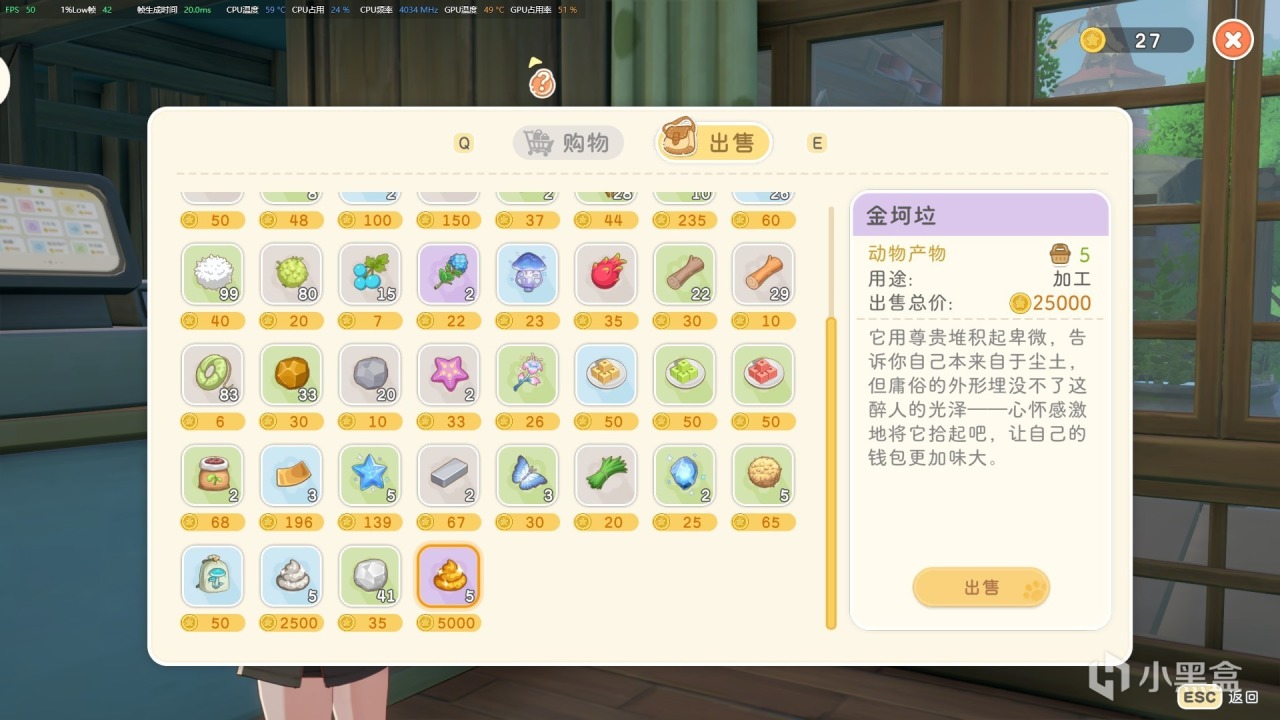 遊戲裏有兩種貨幣需要我們注意。一種是普通的金幣可以去購買商店的物品,金幣也可以通過完成任務和售賣物品獲得。我們家門口有一個快捷賣出物品的箱子,但是不推薦使用,因爲售賣價格實在是太低了。