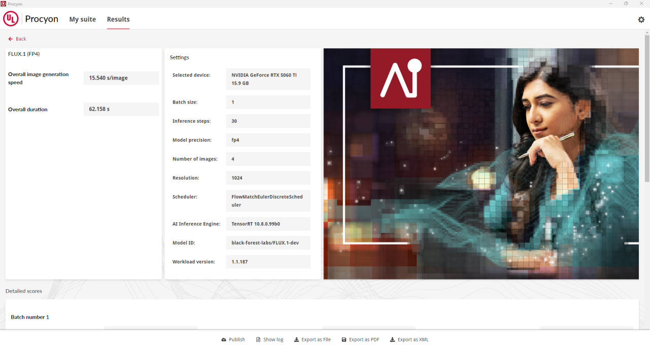 使用Procyon 進行FLUX.1(FP4)測試,生成1024分辨率的圖片