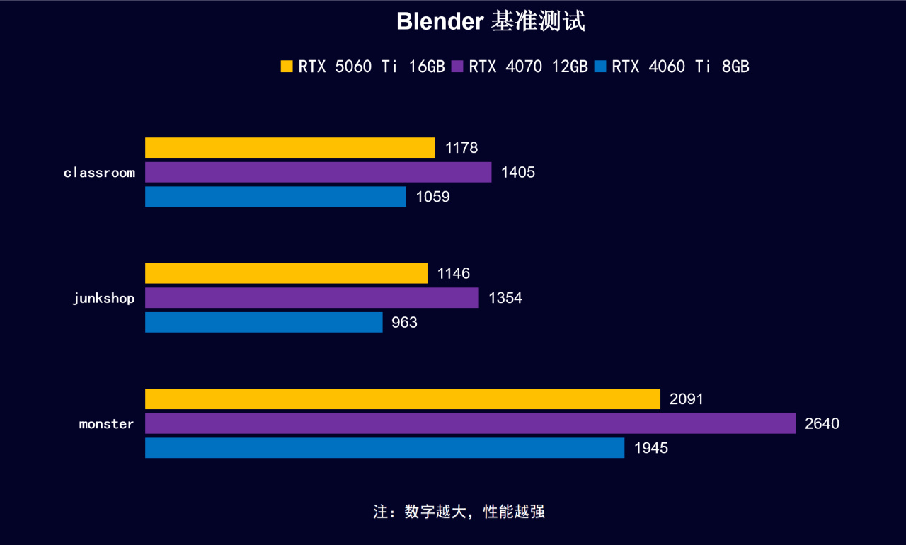 RTX 5060 Ti 16GB 領先RTX 4060 Ti 11%左右,落後RTX 4070 19%