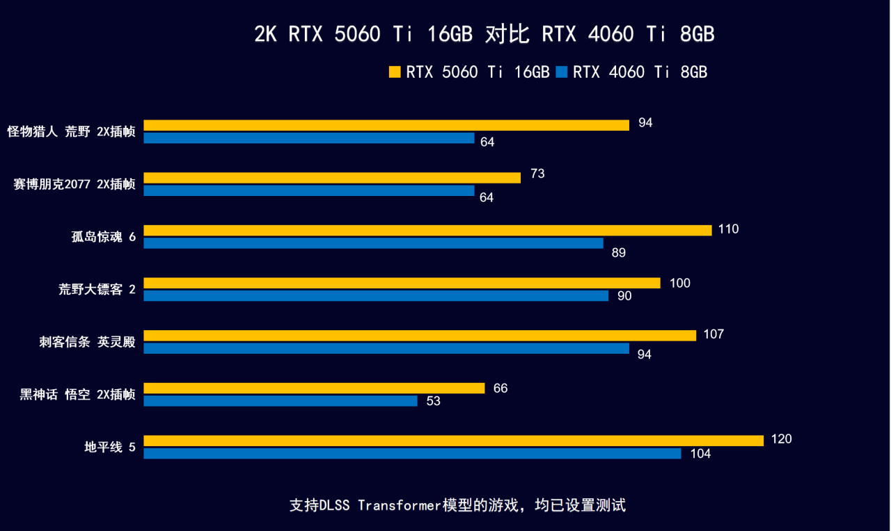RTX 5060 Ti 16GB DLSS 4x 對比4070、4060Ti 8GB (DLSS 2x)