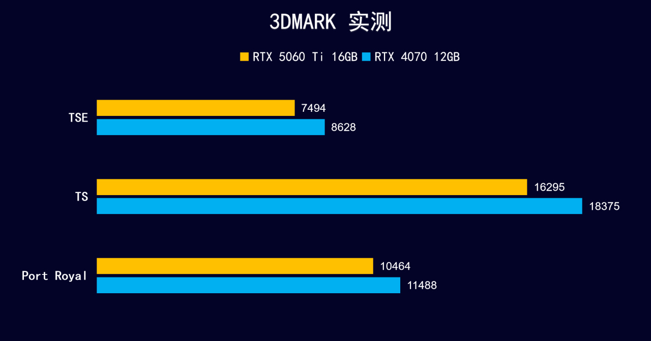 RTX 5060 Ti 16GB 落後RTX 4070 12GB 2.9%