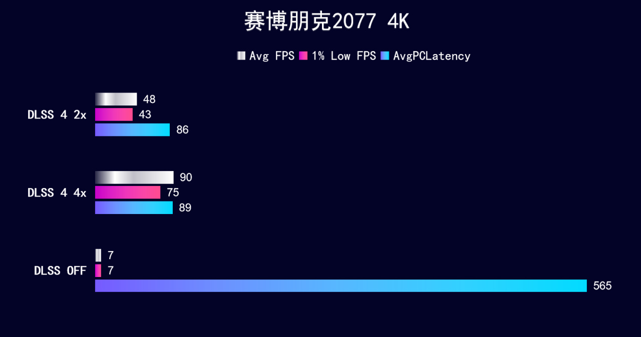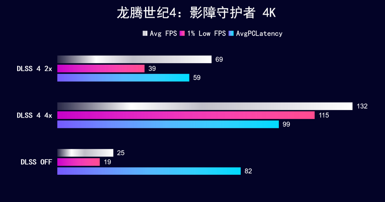 開啓DLSS 4 4X插幀,對比對關掉,遊戲FPS提升至3倍左右,幀生成延遲降低80ms