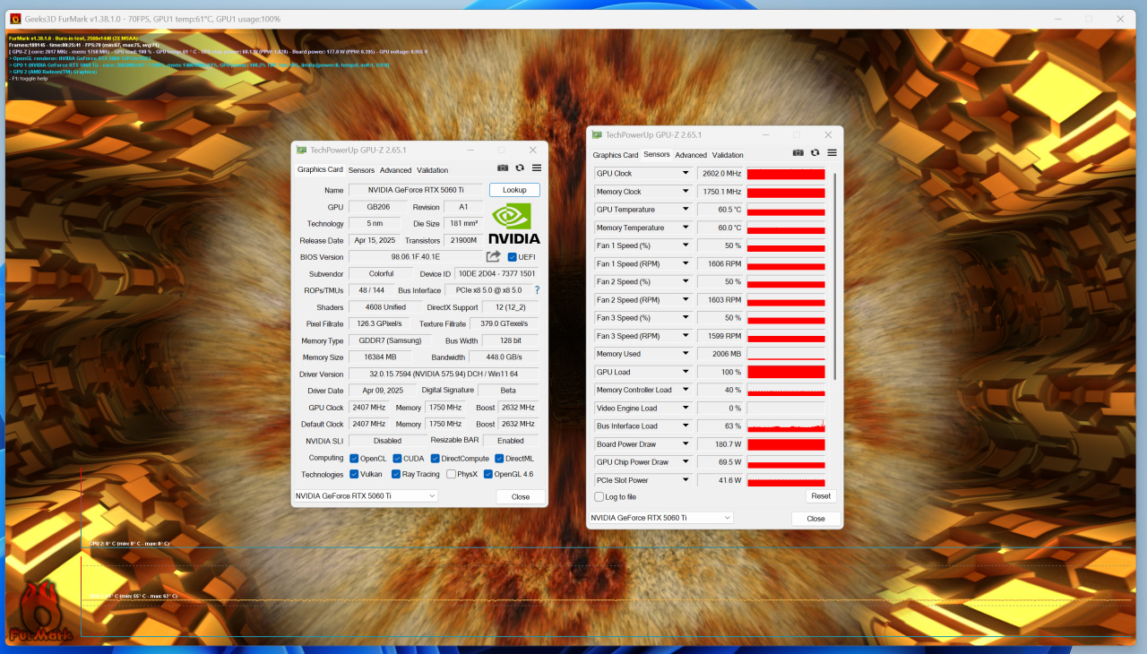 GPU核心頻率2602MHz左右,風扇轉速1606 RPM左右,功耗在180W