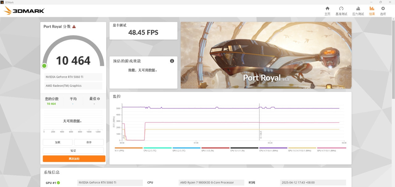 實測Time Spy 16295分,Time Spy Extreme得分7494,Port Royal得分10464